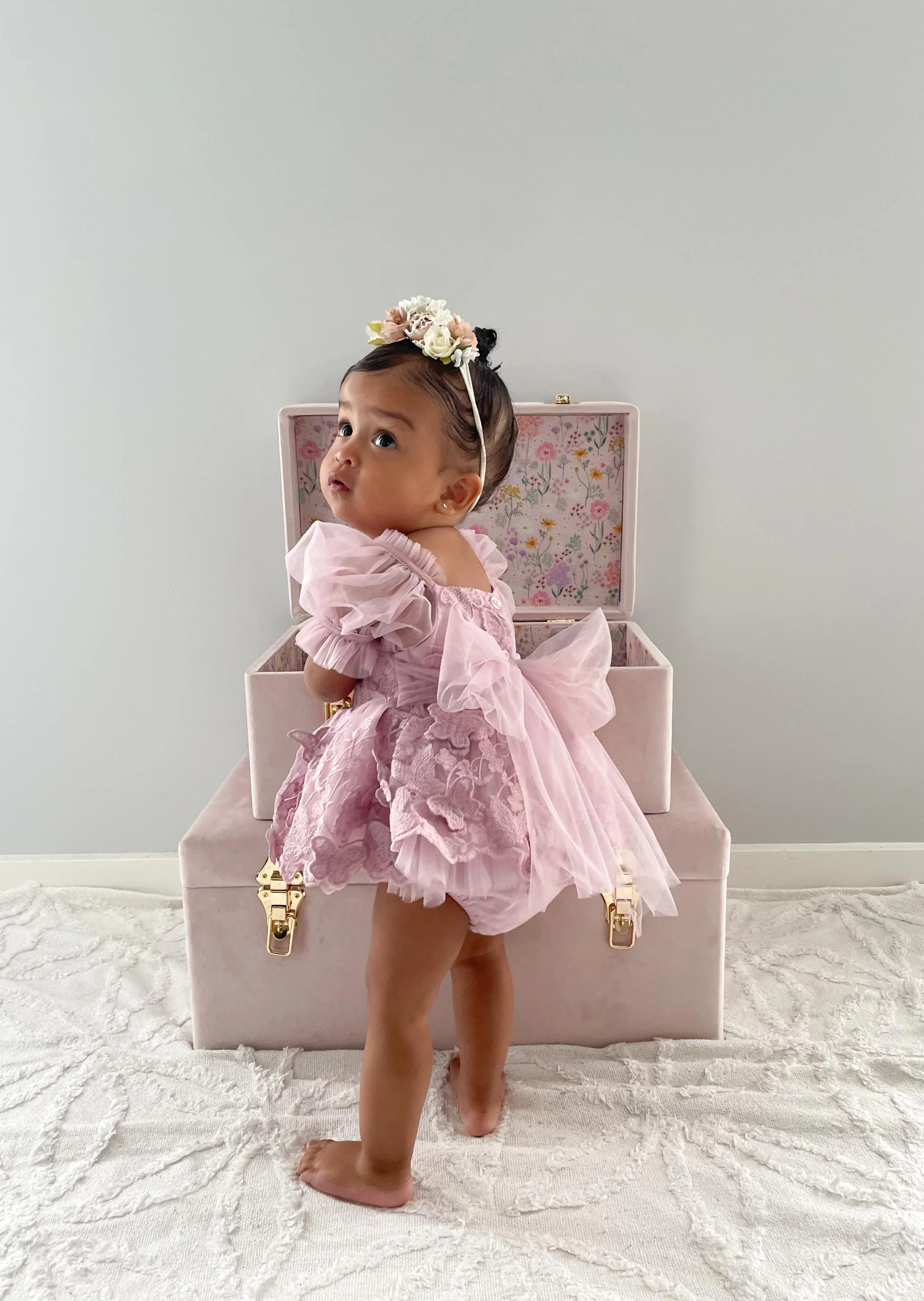 A soft elastic is attached to secure the headpiece on your girl for ultimate comfort.