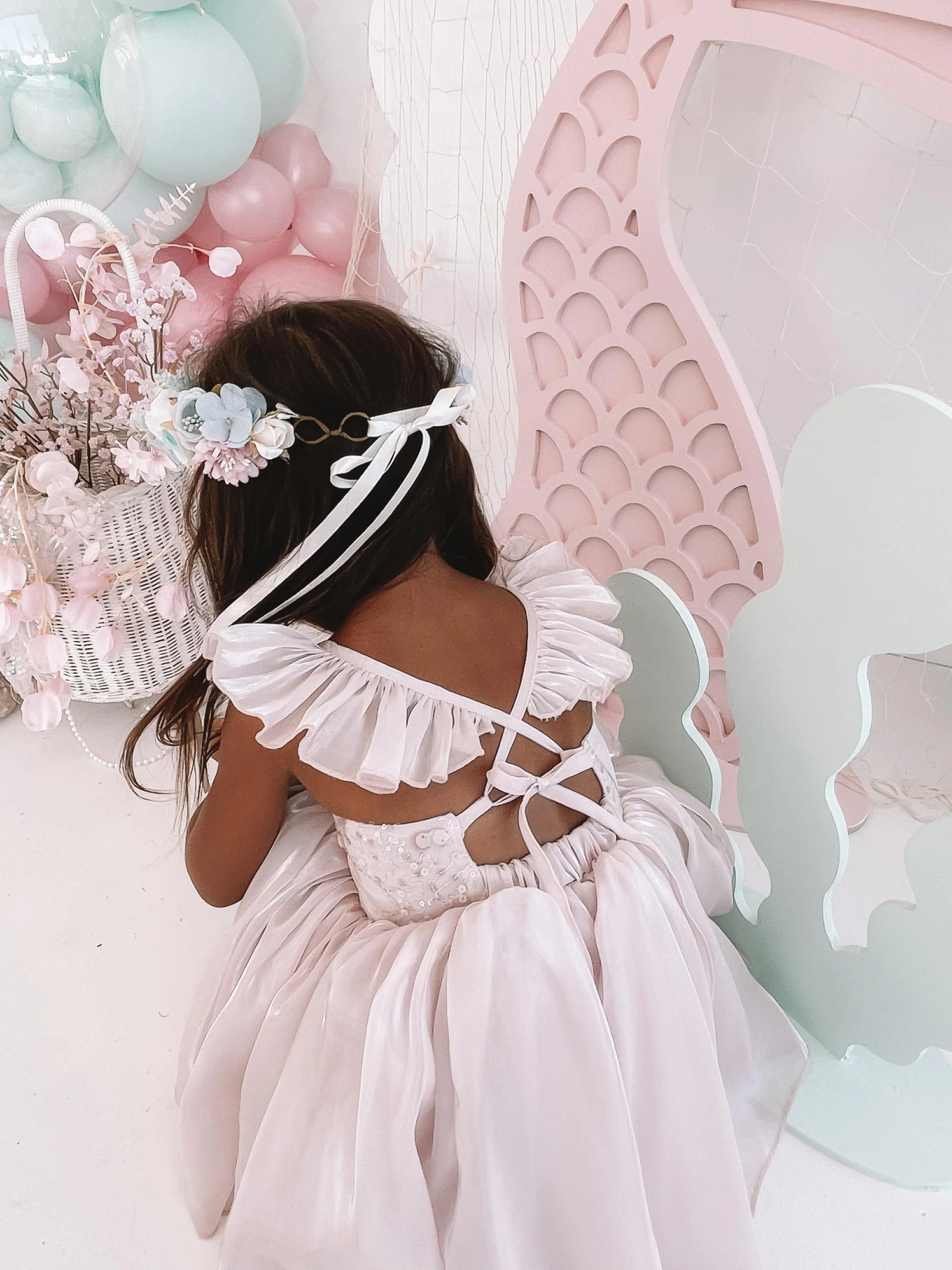 In the most gorgeous glossy pink with delicate sequins on the bodice, this organza dress features a sweetheart neckline, charming ruffled straps, and an elasticated rear seam with a simple hook for the straps to tie into — creating the prettiest bow-back detail. Your little girl will love the dreamy iridescent organza layered tulle skirt, giving her an enchanting mermaid princess look. Lightweight and fully lined in 100% cotton for softness and comfort. Perfect for birthdays, parties, and any special occasion.